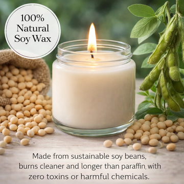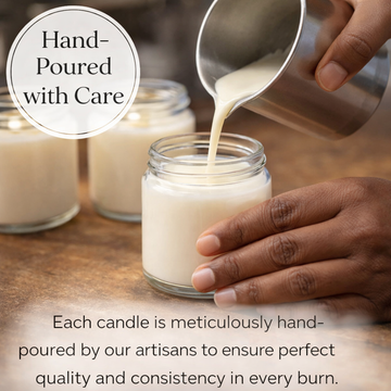 Our candles are hand-poured with premium soy wax and typically burn for 40-50 hours, depending on the size and wick trimming. For best results, trim the wick to 1/4 inch before each use.