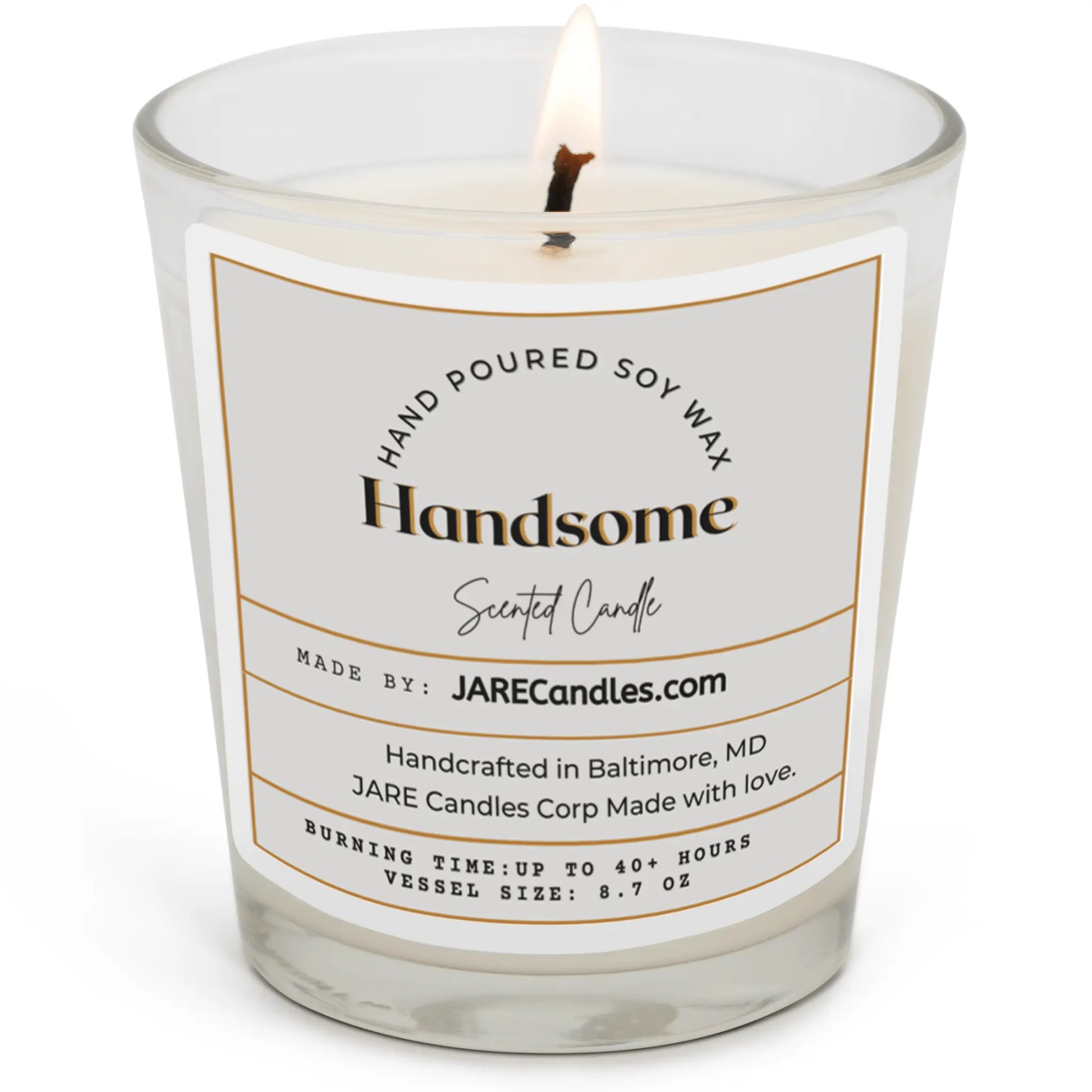 As you light this candle, let the captivating fragrance envelop your surroundings, creating an ambiance that mirrors the allure of a well-chosen cologne. 'Handsome' is the aromatic companion that brings forth the essence of sophistication and charm, making it a perfect addition to any setting where a touch of masculine refinement is desired.